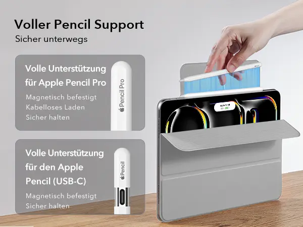- Prend en charge Pencil Pro et Pencil (USB-C) : Cet étui pour iPad Pro prend entièrement en charge le Pencil Pro et dispose d’une rainure latérale en retrait pour le chargement magnétique et d’une fermeture magnétique pour maintenir votre Pencil en toute sécurité.