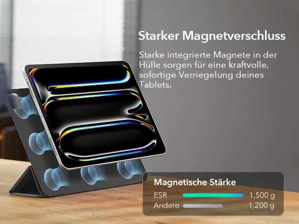 La custodia magnetica ESR Rebound per l’Apple iPad Pro 11″ (2024) è una custodia leggera che si fissa all’iPad con forti magneti e copre così il retro e il display.