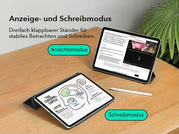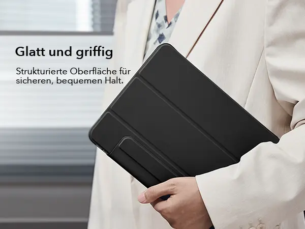 Il triplo supporto pieghevole garantisce un appoggio sicuro in modalità di visualizzazione e scrittura. La copertura antigraffio assicura che il display rimanga impeccabile e privo di graffi.